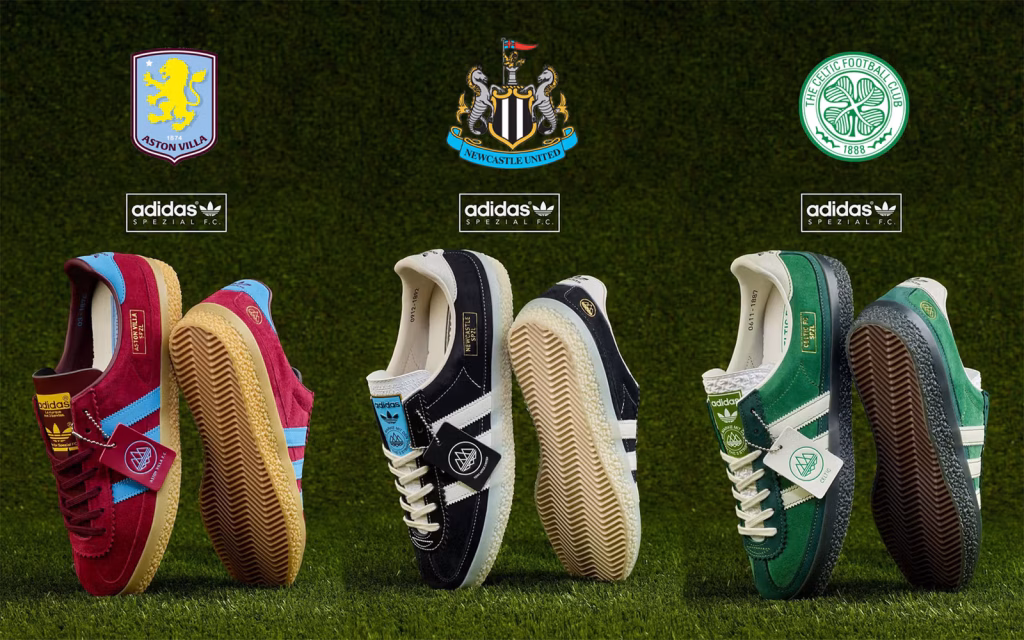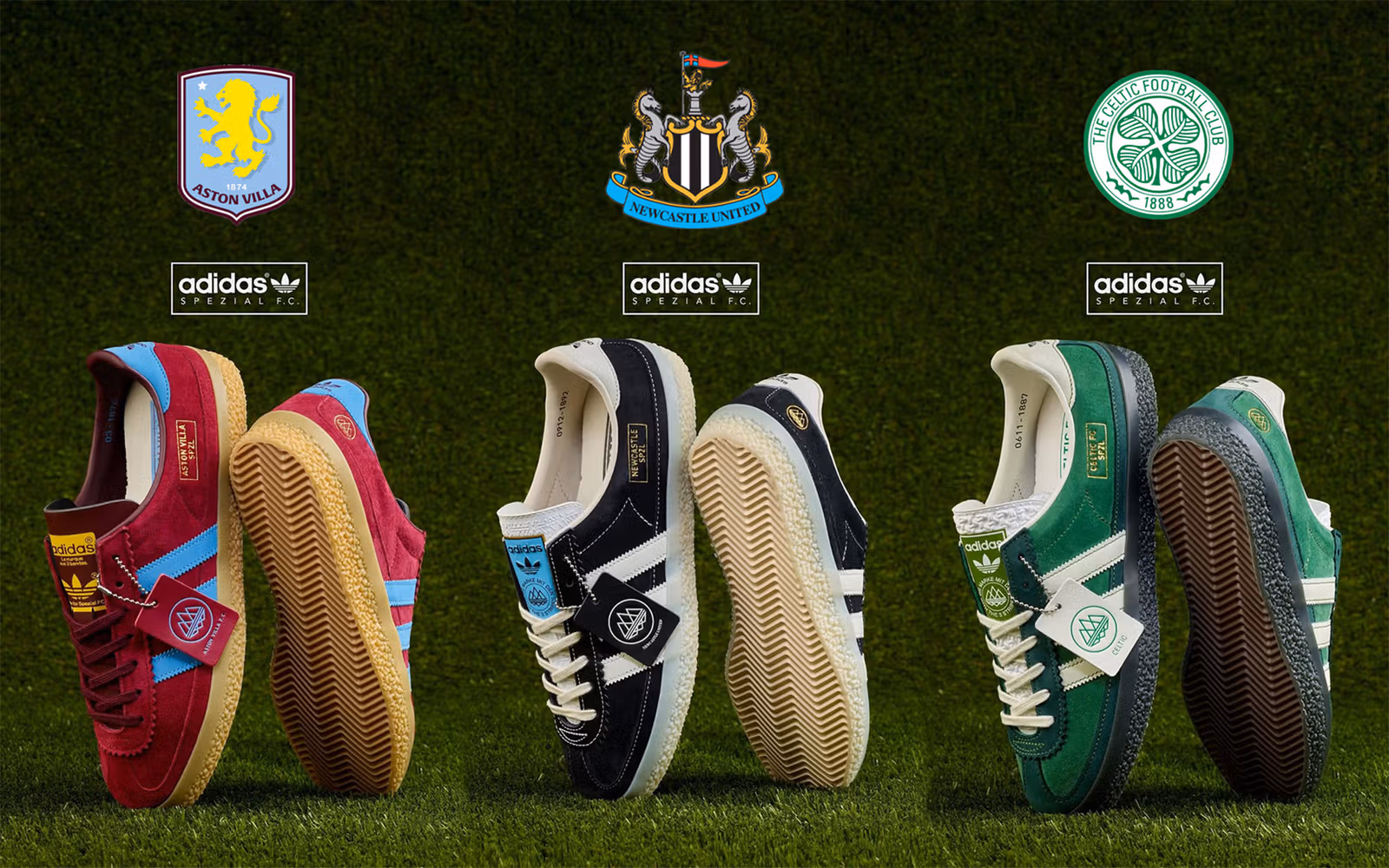 adidas SPZL, the cult offshoot curated by Gary Aspden – a respected figure in football culture – continues to honour the brand’s deep connection to the terraces with the release of the new SPZL F.C. pack. This latest drop brings together three of adidas’ heritage clubs — Aston Villa, Newcastle United, and Celtic — each reimagined through a shared lens of football identity, design authenticity, and terrace tradition.