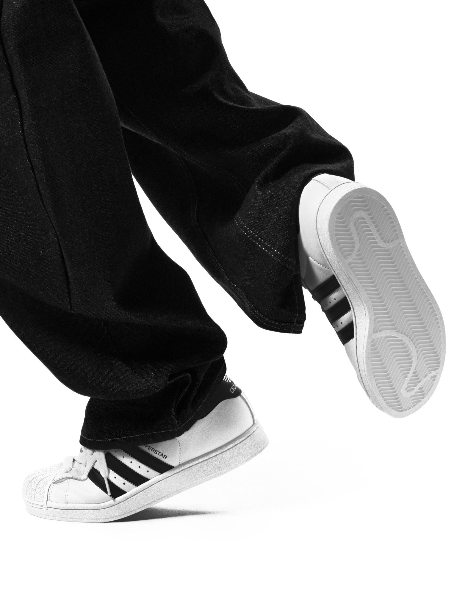 Shot entirely in black and white, the campaign strips things back to the essence of the Superstar: timeless lines, three stripes, and pure cultural currency. It’s a nod to the shoe’s original colorway, but also to its ability to transcend eras and scenes.