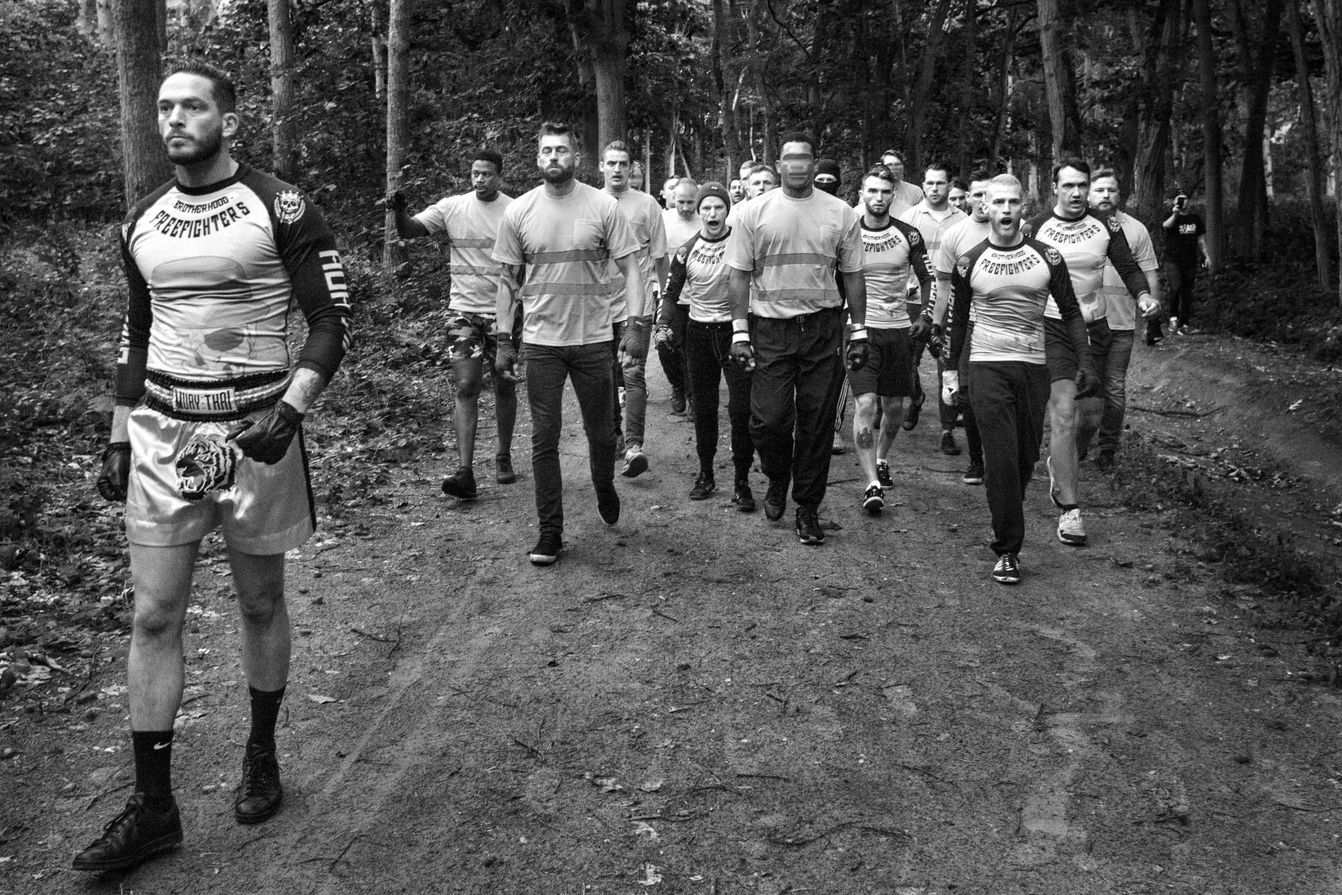 BOSFIGHTS / LIVE FREE is a documentary photography project that takes viewers deep into a hidden football subculture. Over a period of two years, Belgian photographer Sebastian Steveniers gained access to an underground network of rival hooligan groups who meet in forests to engage in organised “free fights,” far from public view. The confrontations are brief, intense, and extremely violent, yet governed by their own codes and rituals.