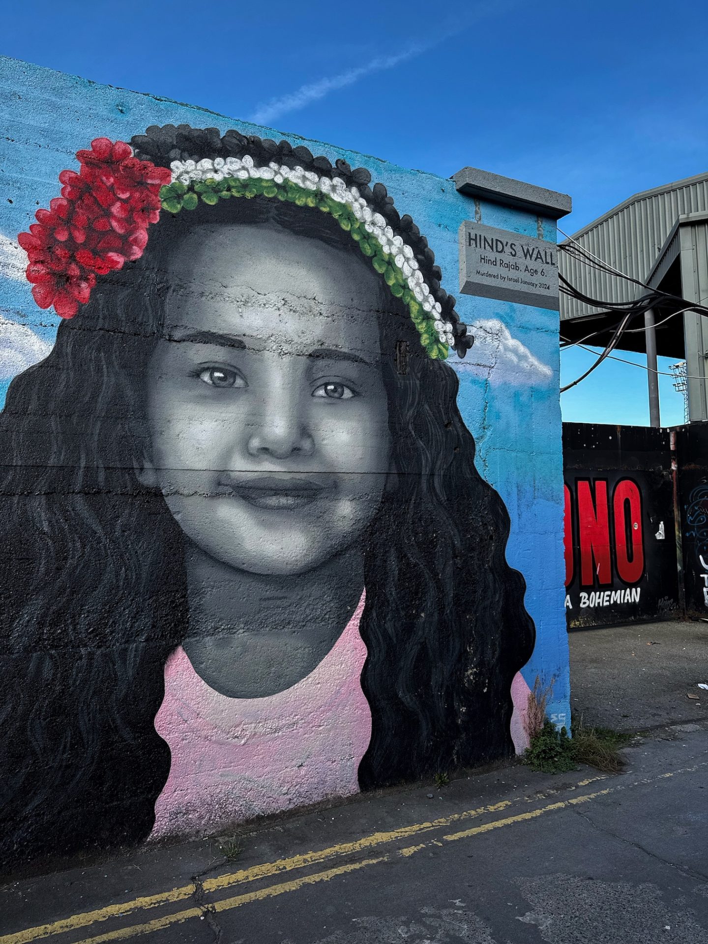 On either side, murals and stickers cover Dalymount Lane. From portraits of Jack Charlton and Pelé to, among others, the smiling face of Hind Rajab, a five-year-old Palestinian girl killed by Israeli forces during the Gaza war, the stadium’s exterior offers a powerful prelude before entering Dalyer. On the other side of the gate are works by Niall O’Lochlainn, a talented street artist whose pieces include a portrait of Bob Marley, a “Refugees Welcome” sign, and a portrait of a Palestinian woman surrounded by Palestinian and Irish flags at the halfway line. This last work was created ahead of the first-ever European match involving a Palestinian national team, in May 2024. In a packed Dalymount Park, the Bohs women’s team faced the Palestinian women’s team to raise funds for Gaza. Faced with ignominy, Bohs fans know how to unite.