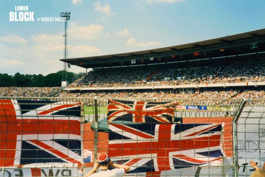 “Leaving the ground provided a memorable sight, I had left the terracing and was on the concourse a level up from the ground when the gates were opened. There was plenty of orange just back from the entrance and then a sea of white helmets (the riot police). England charged out and all the orange started running followed by the white helmets followed by thousands of young lads with union jacks!