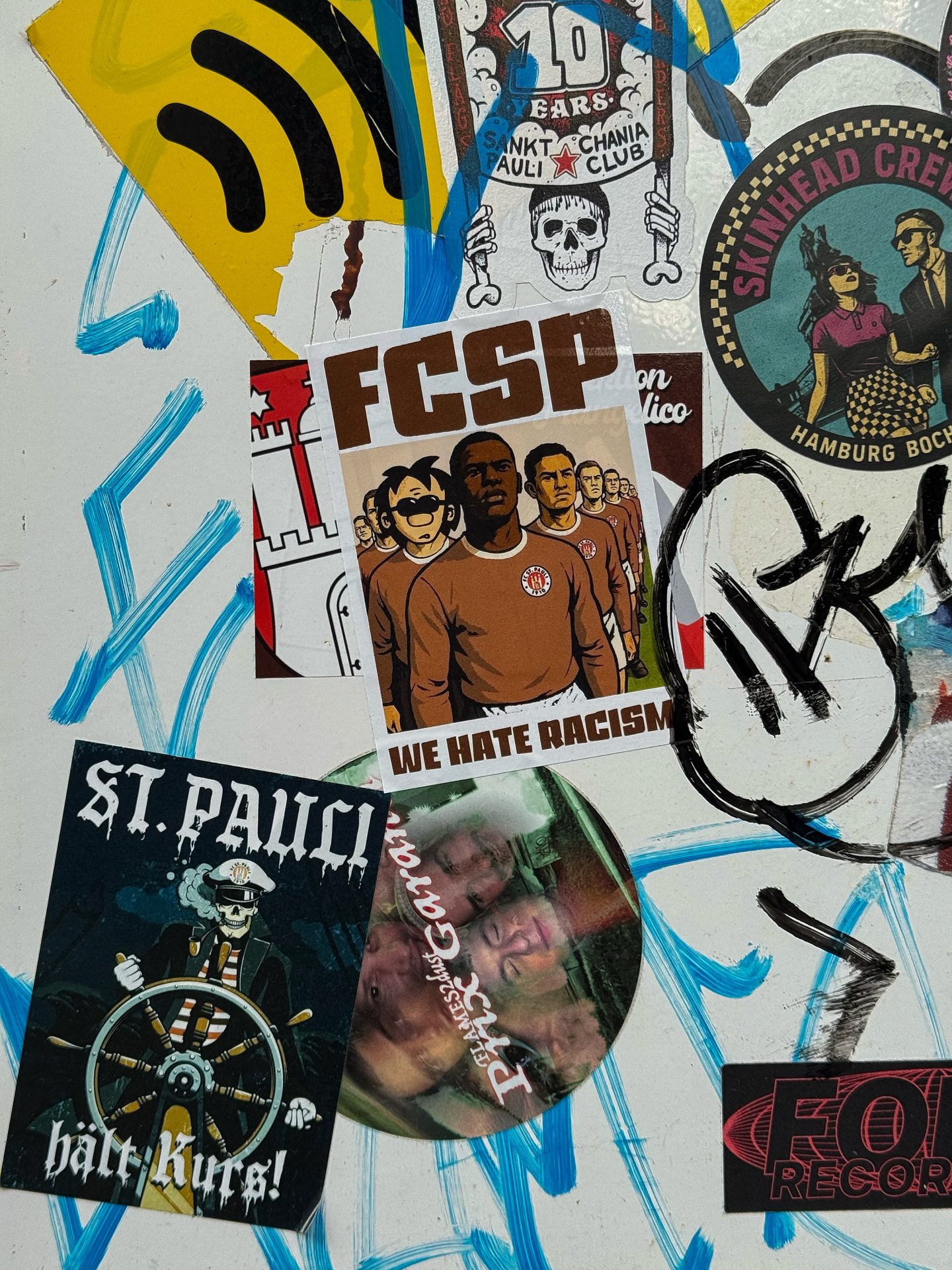 Emerging from activist print culture in the 1980s and exploding in the 1990s as production costs fell, sticker culture blends art, politics and terrace banter. Etiquette dictates layering rather than erasing rivals, preserving a visible timeline of territorial contest.