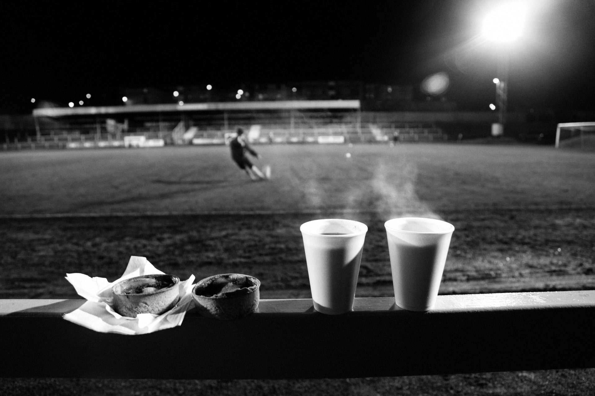 Half time pie and Bovril on a cold Scottish January night. Albion Rovers v Queens Park, Cliftonhill Stadium. Archival Giclée print with a pearl finish, unframed.